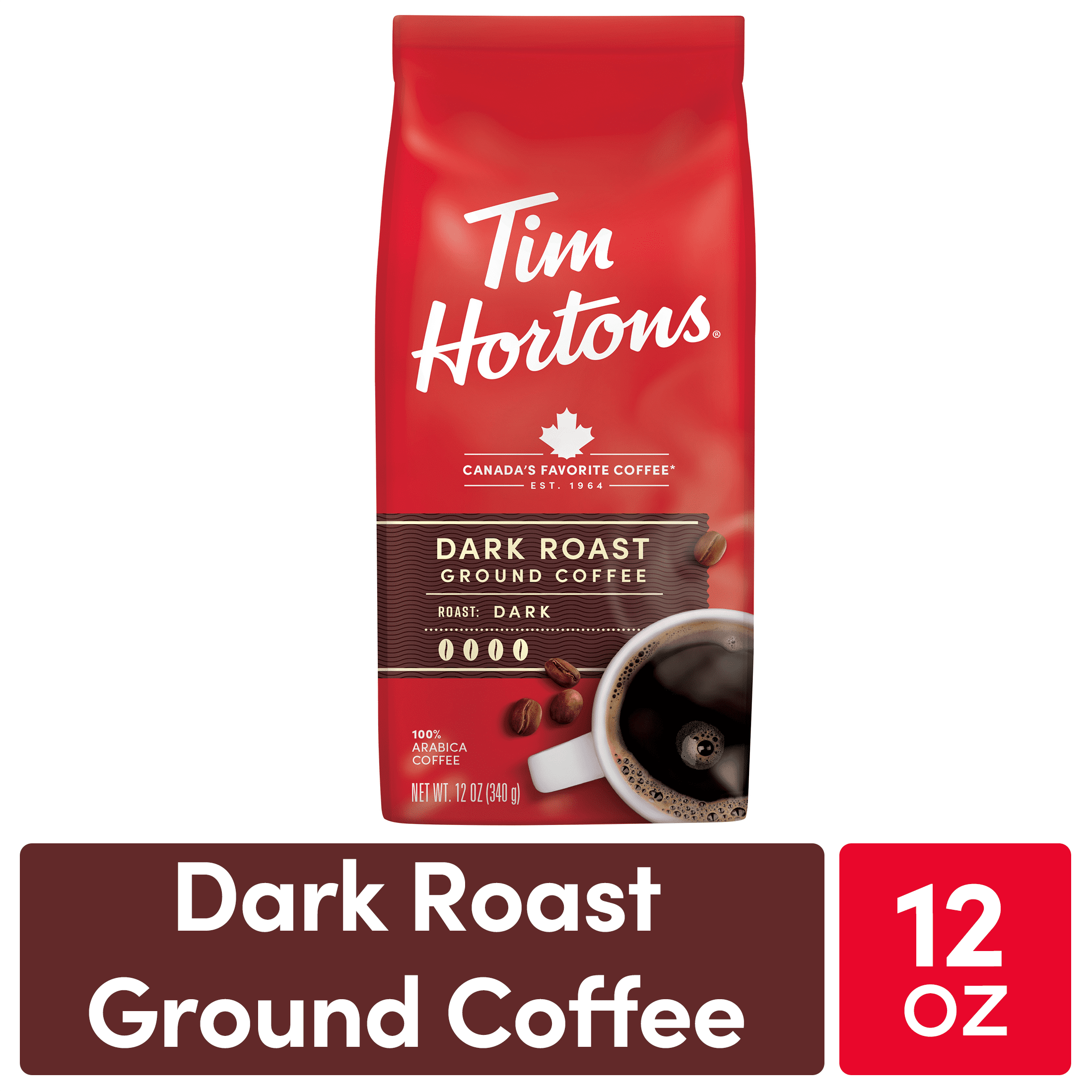 Tim Hortons Dark Roast Ground Coffee 100 Arabica 12oz Bag Walmart Com